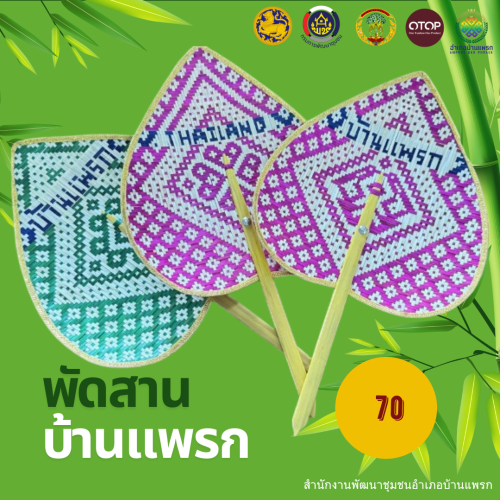 พช.บ้านแพรก ขอนำเสนอ ผลิตภัณฑ์ OTOP พัดสานขอบทองสานตัวหนังสือ